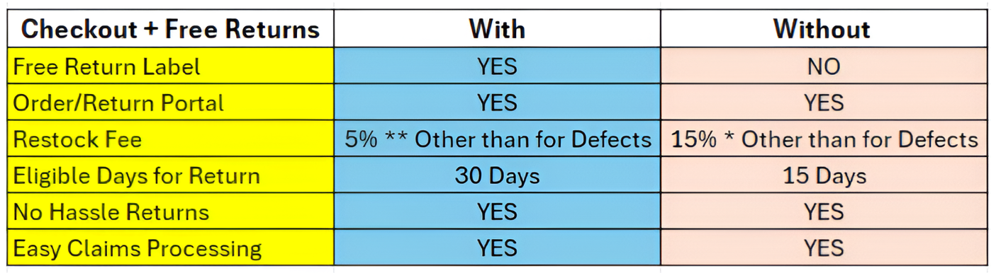 Make your purchase with the peace of mind that if the package is lost, stolen, damaged or other we will take care of it. If you make a purchase and find you don't need it after all, no worries, get a free label to send it back.